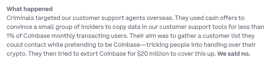 In a blog published on May 15, 2025, titled ‘Protecting Our Customers – Standing Up to Extortionists’, the Coinbase team explained the scale and cause of the attack:
